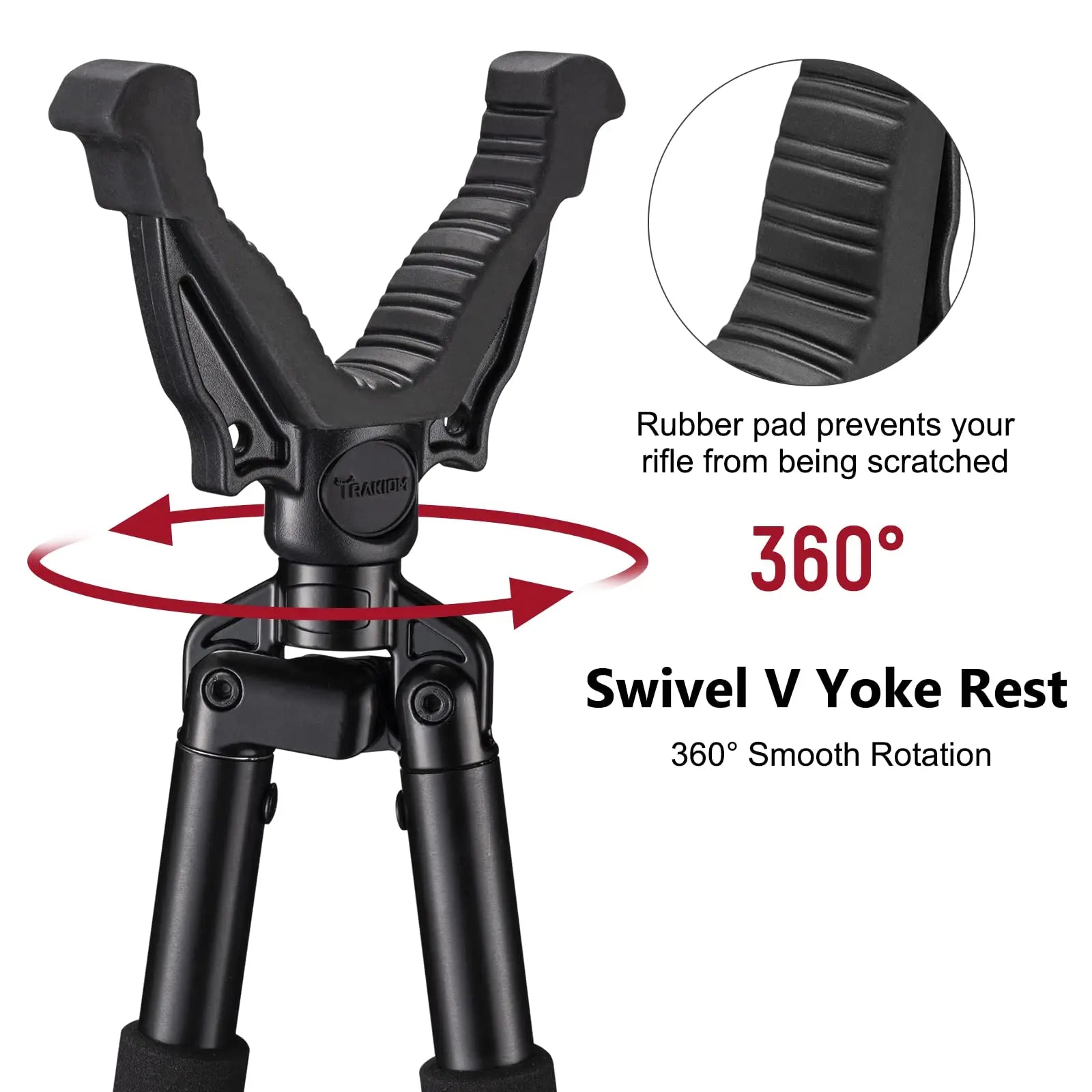 Rubber Yoke Bipod: Trakiom V Yoke Rest can rotate 360 degree flexibly and smoothly to adjust your rifle. And Rubber pad of bipod shooting sticks can effectively prevent your rifle from being scratched.