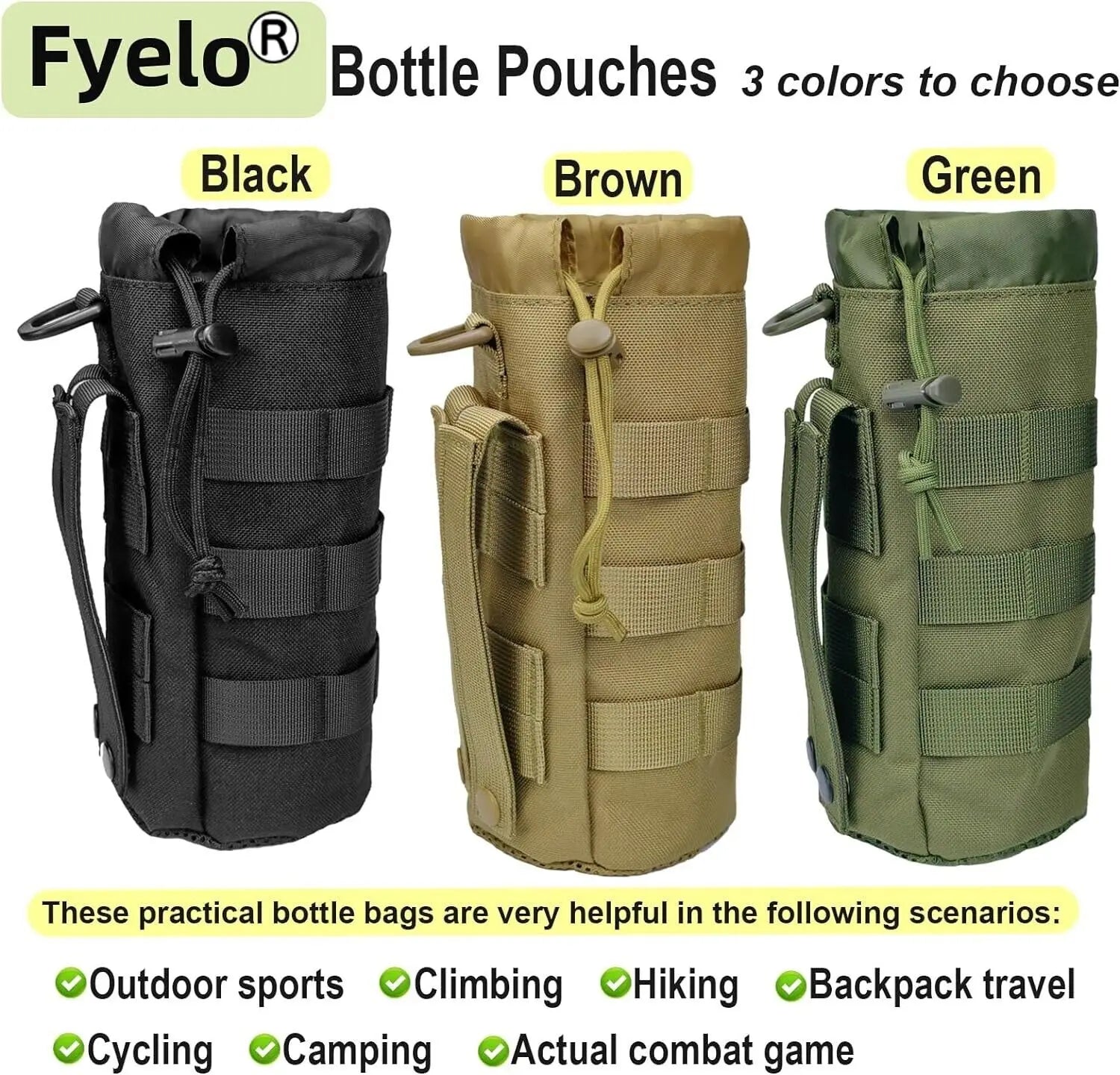 【Product Size】: The mesh style molle water bottle sleeve is suitable for bottles with a height of less than 11 inches and a width of less than 4 inches, these bottles generally have a capacity of 16 / 24 / 32 /40 oz.